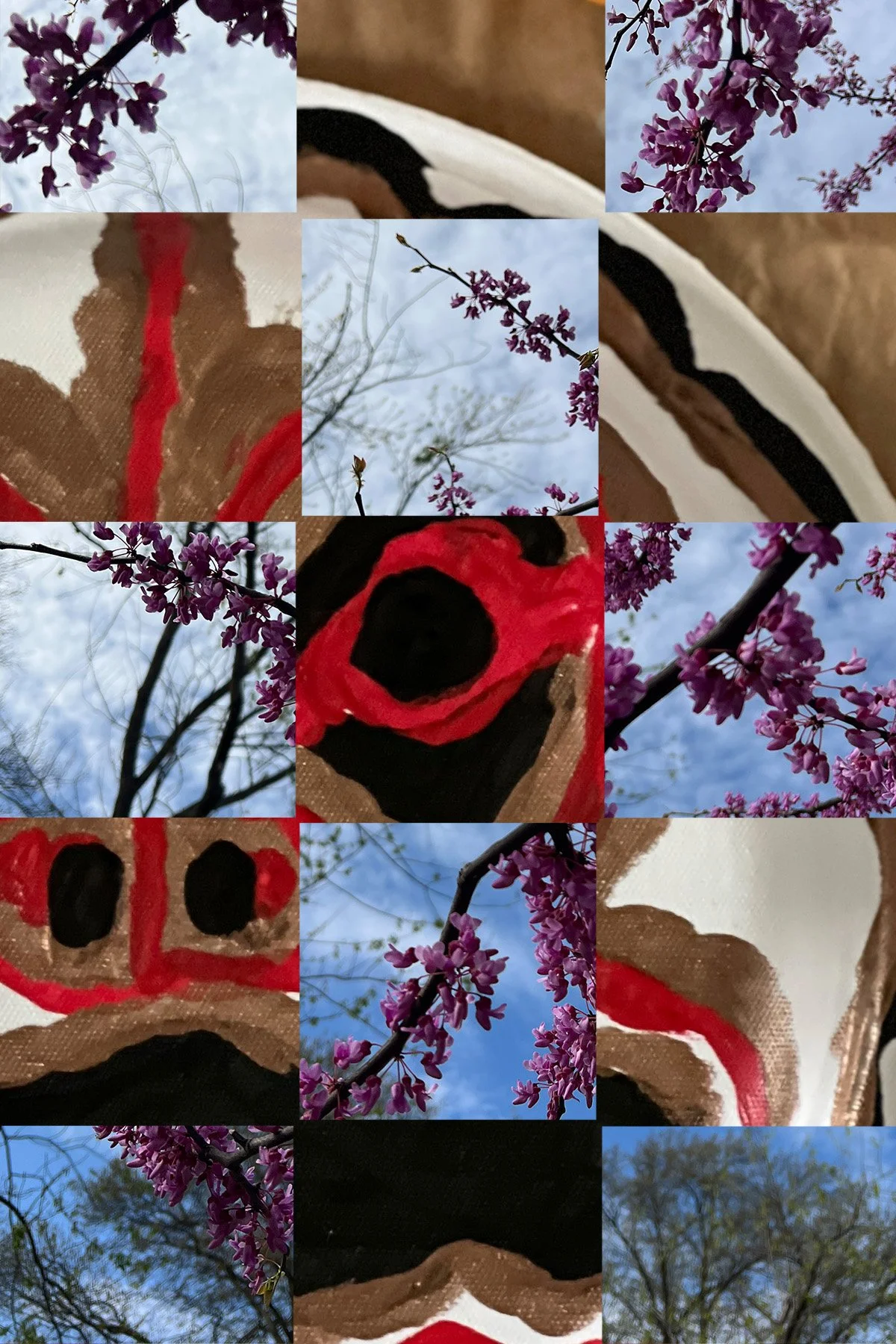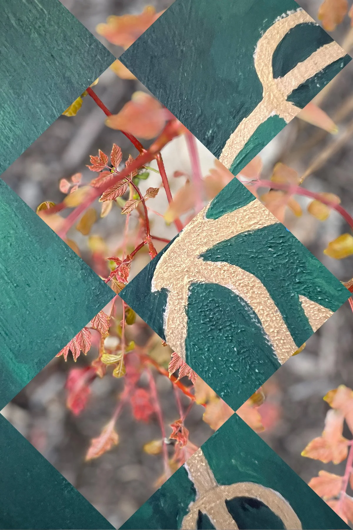 This body of work was created with the Kansas City Society for Contemporary Photography & the Nelson Atkins Museum of Art. These pieces are a response from their exhibit Strange and Unfamiliar Places. We were asked to create images that reflected our point of view from this particular moment in time. My images are a response to motherhood, creativity, and renewal to my daily life in spring of 2025. Separate images are pieced together with traditional quilt block shapes as a way of bringing the two separate subjects together. Through writing workshops we were encouraged to write responses on the back of two of our images and then during the Nelson’s Night Shift event museum guests were able to write on and send our cards to people throughout the country. My two chosen postcards will also be in the museum archive.
